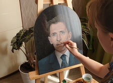 После окончания работы над заготовкой, плита была передана художнице-портретистке, которая и продолжила работу над ним. Для начала она покрыла гранит специальным раствором, на который в дальнейшем и будут наноситься краски.