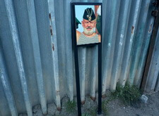 Портреты были изготовлены отдельно, а рамки сварены из надёжного прямоугольного профиля. Металл окрашен в чёрный цвет.